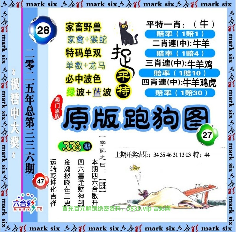 | 336期 | 羊 | 绿双 | 4尾 | 开牛17 |